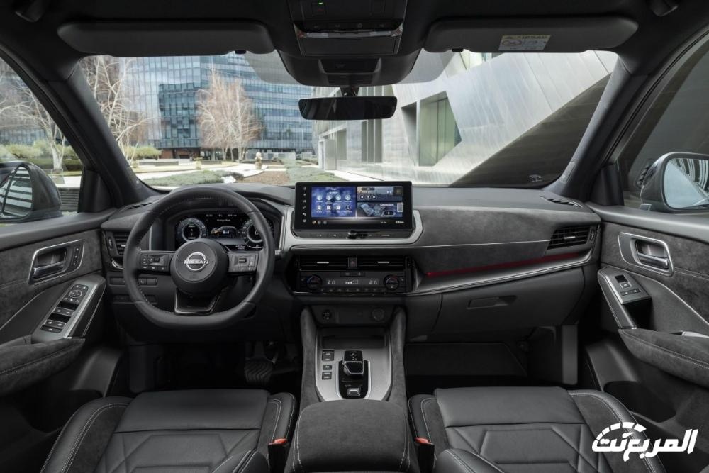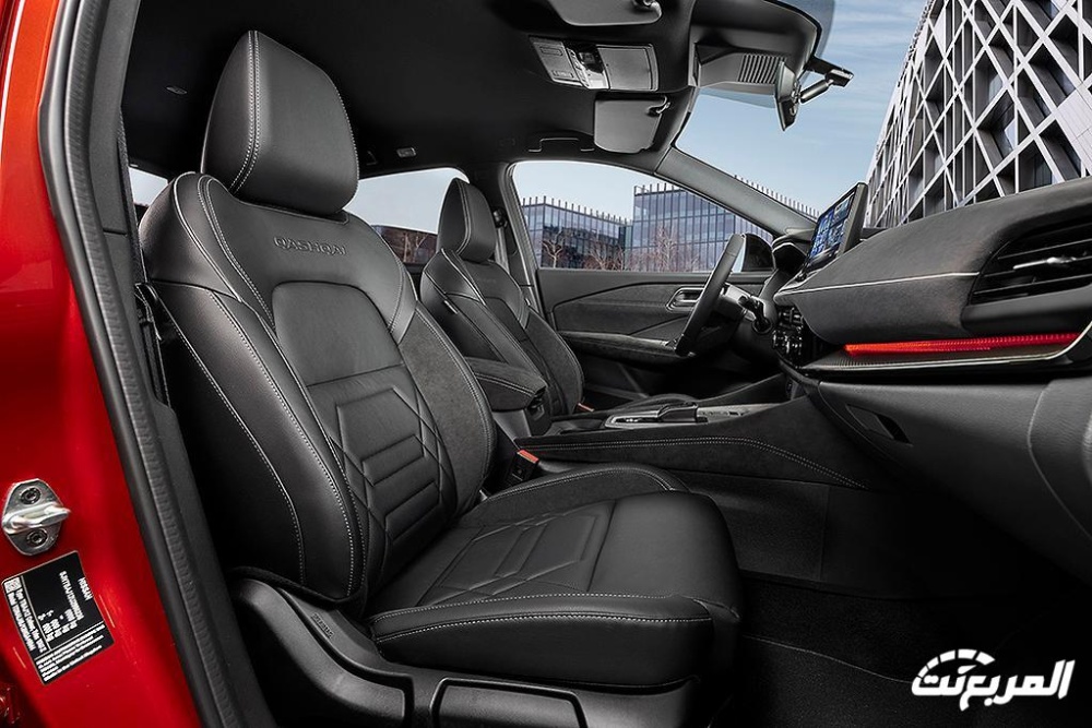 ومن الداخل، تتميز نيسان قشقاي 2025 بمقاعد جلدية سوداء بزخرفات من مادة ألكانتارا الفاخرة، وإضاءة محيطية، وتتميز بخدمات جوجل داخل شاشة المعلومات والترفيه والتي تأتي مقاس 12.3 بوصة في أوروبا، بما يشمل مساعد جوجل الصوتي القادر على التحكم في بعض خدمات السيارة مثل التهوية والتدفئة والملاحة.