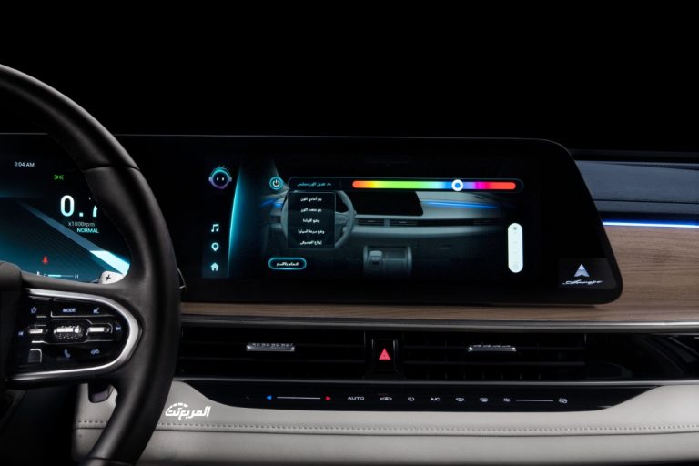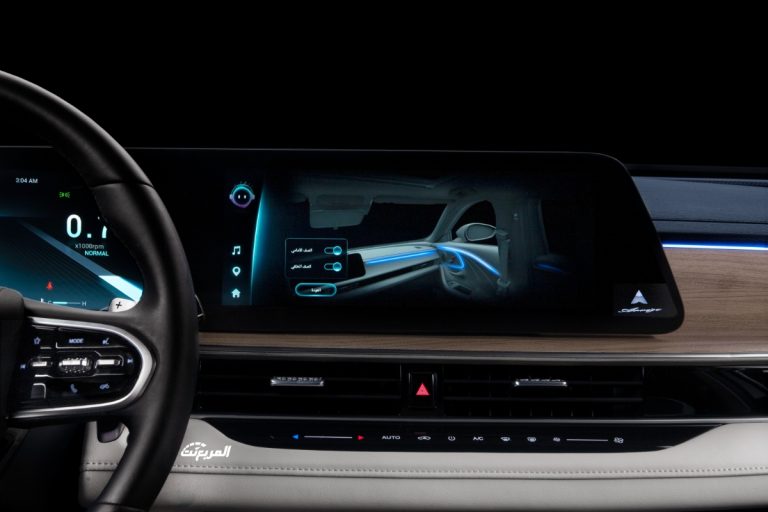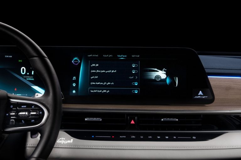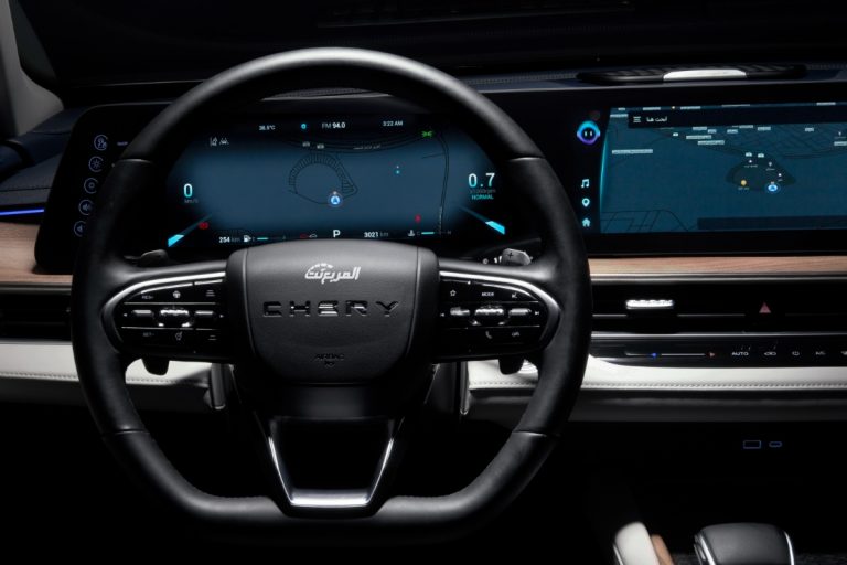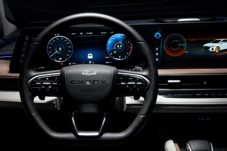وفي الداخل، نرى المقصورة العصرية لـ شيري اريزو 8 2024 والتي تأتي بتصميم أنيق وتحصل على مواد عالية الجودة تمنحها طابع فاخر كما تحصل على العديد من تقنيات الترفيه والراحة المتقدمة ما جعلها خيار مناسب للعائلات الصغيرة على الطريق.