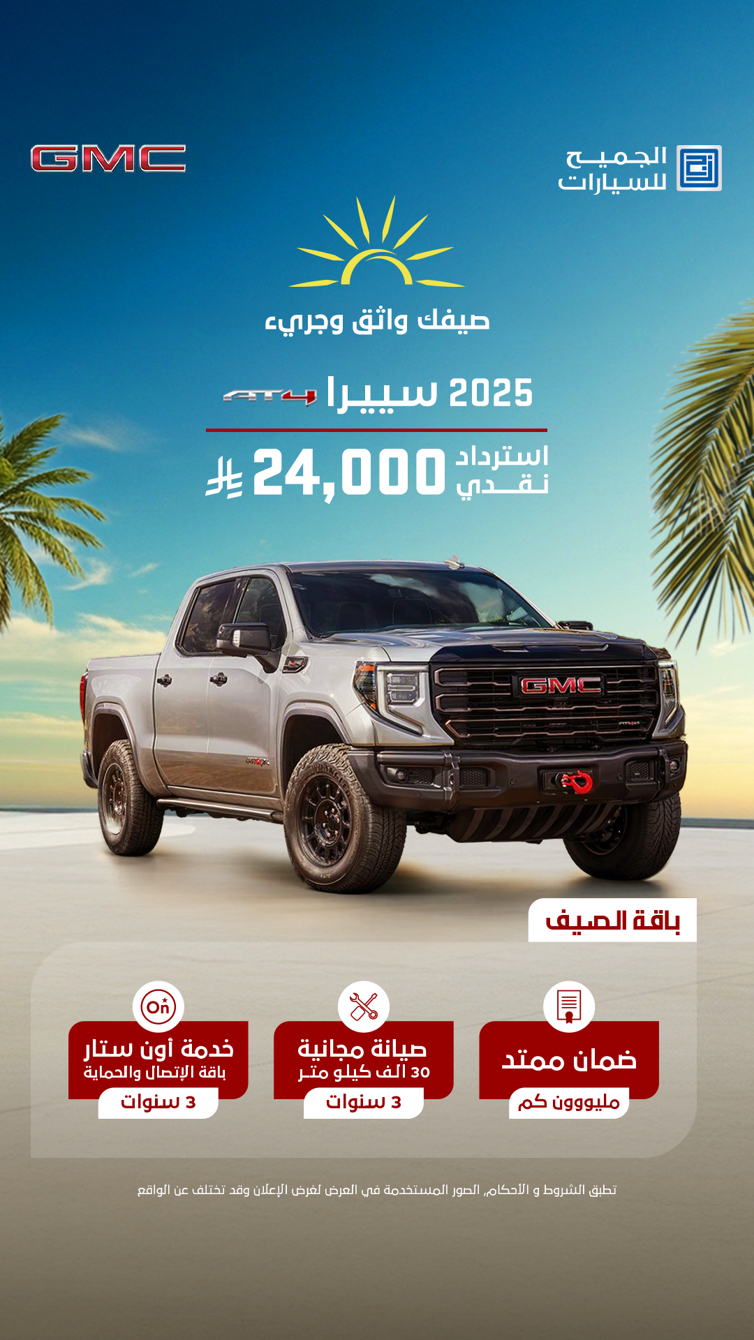 تدخل الأيقونة الأمريكية سييرا AT4 ضمن عروض الجميح 2025، وهي فئة مخصصة للطرق الوعرة من شاحنة جي إم سي القوية، وتجمع بين الهيبة التصميمية وقدرات الأداء العالي، مع تجهيزات حصرية تجعلها مناسبة للرحلات والتحديات الصعبة، إليكم أهم ما يُميزها في نقاط: