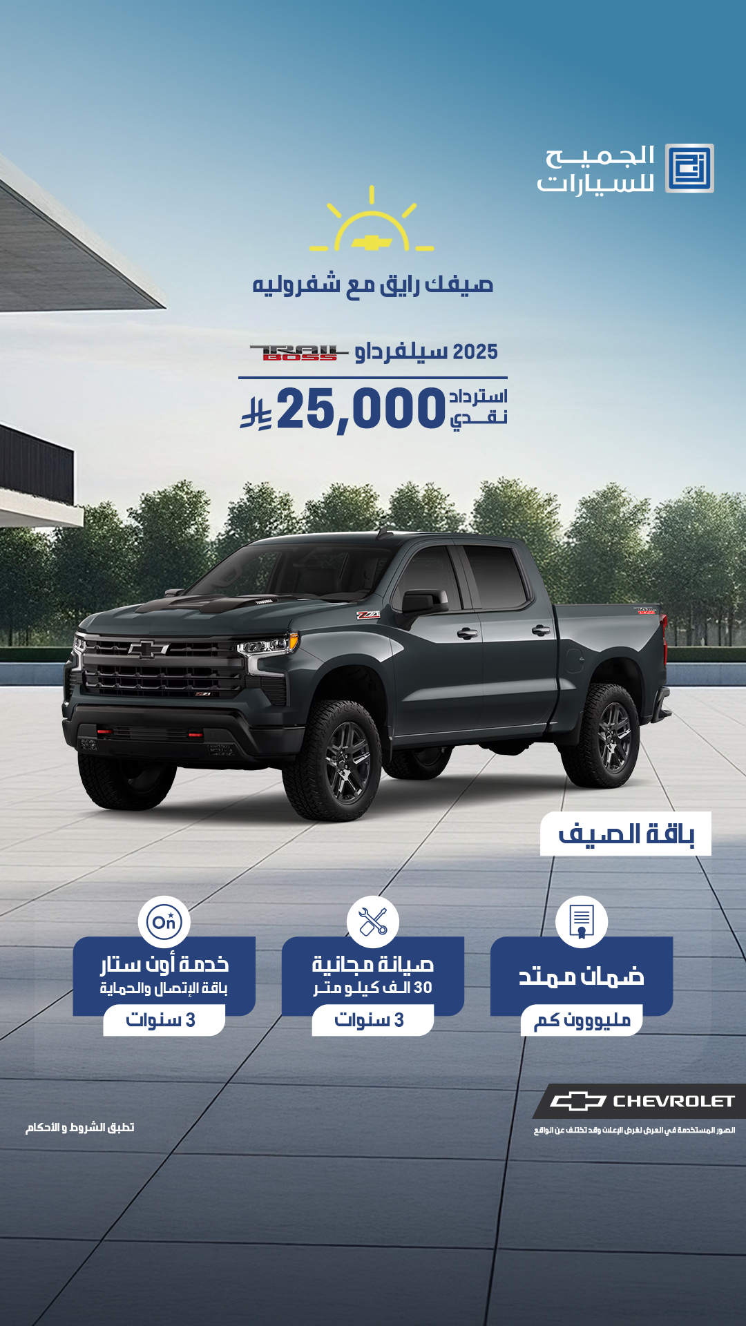 هل تبحث عن سيارة شيفروليه جديدة بصيف 2025؟ لا تفوّت هذه العروض المميزة من الجميح، التي تمزج بين القيمة، الضمان، والخدمة بعد البيع. تابع موقع المربع نت للمزيد من أخبار السيارات والعروض الحصرية من الوكلاء المعتمدين في السعودية.