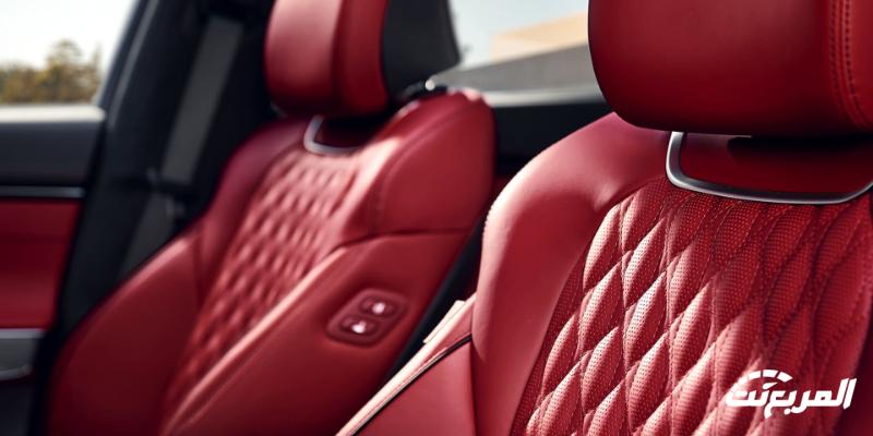 تكون المقاعد الداخلية بتطريز خاص، وهي بتغطية من جلد نابا الفاخر، وهنا تُصبح شاشة عرض العدادات بمقاس 12.3 بوصة، أما بالانتقال إلى فئات جينيسيس GV70 2024 من حيث وسائل الحماية فهي يُضاف لها الخصائص القياسية مع تزود السيارة بمصابيح أمامية “LED” بعدسات مُزدوجة وتفاعلية.