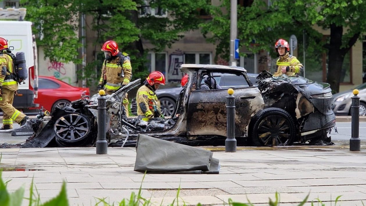 تشير التقارير البولندية أن سائق سيارة لوسيد اير قد اصطدم بعامود في وسط التقاطع عند محاولته لتفادي سيارة أخرى كان على وشك الاصطدام بها، ولكن لم يحالفه الحظ كثيراً حيث تسبب الاصطدام بالعامود المروري بوقوع ضرر على بطارية السيارة والتي بدأت بالاشتعال على الفور.