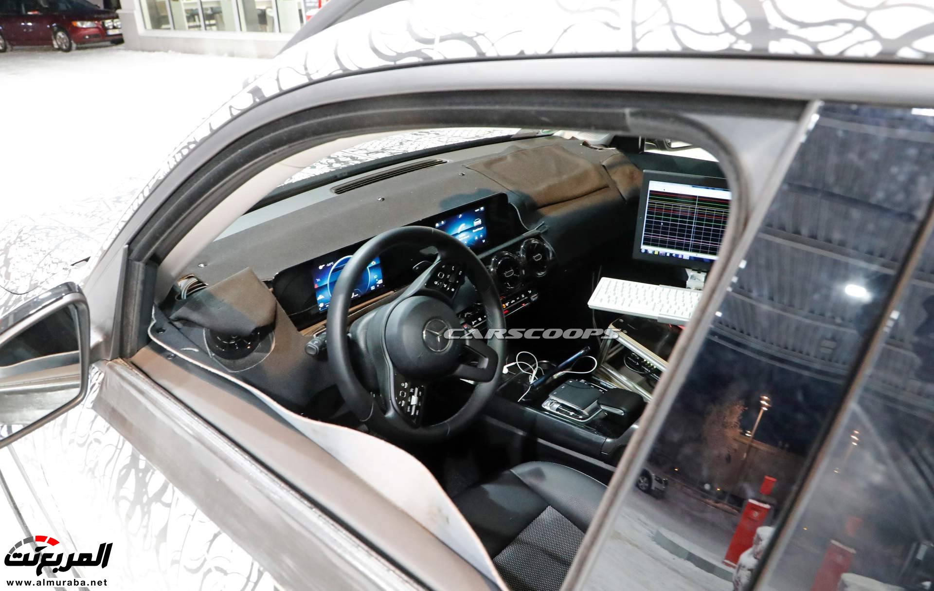 غالبية تفاصيل داخلية GLB مأخوذة من A-Class، حيث فتحات التهوية على شكل توربين، المقود ثلاثي الشكل متعدد الوظائف، اللوحة اللمسية بالكونسول الوسطي، شاشتين MBUX للمعلومات الترفيهية 10.25 إنش والملاحة بالواقع المعزز عبر الأقمار الصناعية.