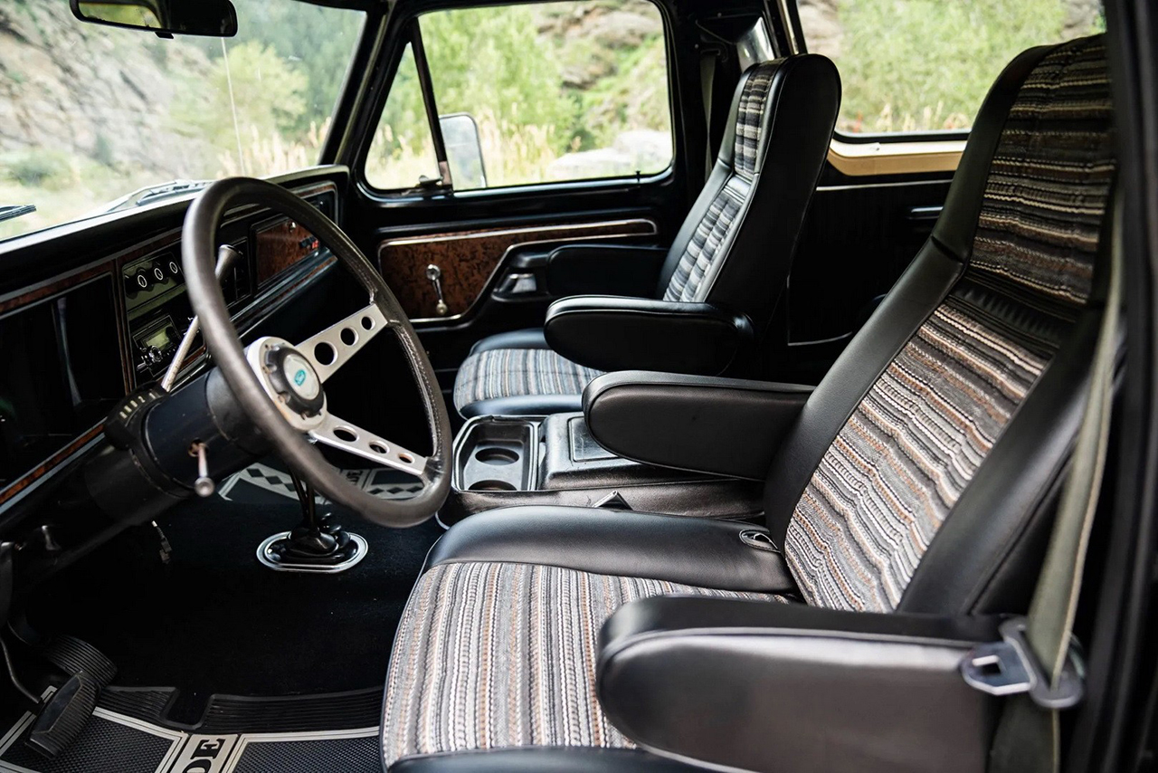 في الداخلية حصلت فورد برونكو الكلاسيكية من عام 1979 على عملية تجديد شاملة مع مراعاة المظهر الكلاسيكية الأصلي، والذي لم يمنع ذلك مالك السيارة من إضافة نظام سمعي عالي الجودة مع جهاز راديو بمظهر كلاسيكي حتى يتناسب مع تصميم لوحة القيادة، وكذلك حصلت على عجلة قيادة جديدة مع مقاعد من الجلد والقماش المطرز، والعديد من لمسات الخشب الصناعي، ومكيف هواء، وعازل صوتي.
