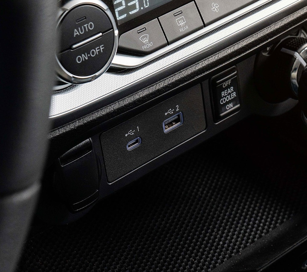- مخرج USB للكونسول الخلفي (النوع A + النوع C).