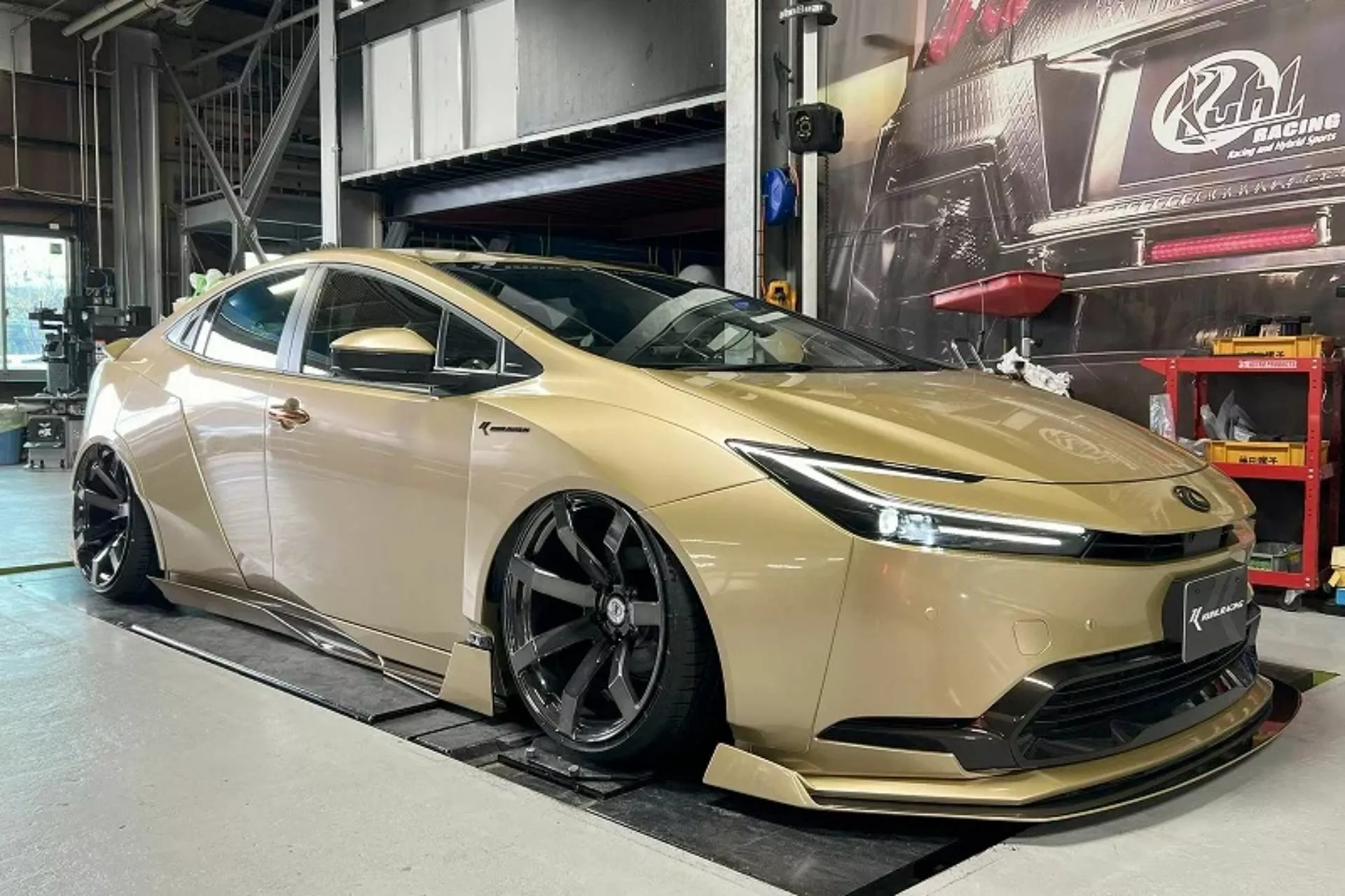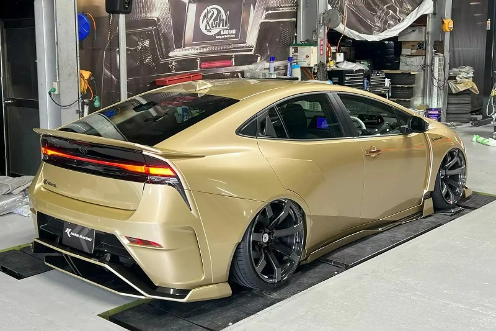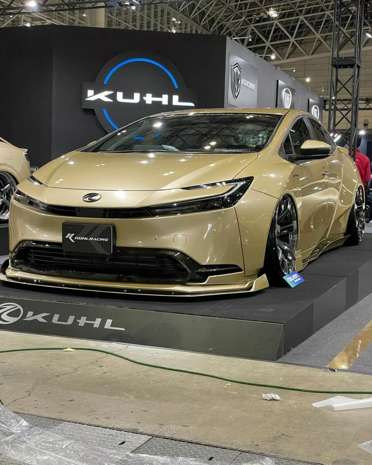 لنبدأ بموديل تويوتا بريوس الذي ازداد عرضه بشكل كبير، مع ازدياد حجم الرفارف الأمامية والخلفية واندماجها في الهيكل الخارجي بشكل أنيق.. مع مشتت هواء خلفي صاخب ونظام تعليق هوائي وفتحات عادم إضافية وجنوط جديدة قياس 20 إنش، والنتيجة النهائية مدهشة.