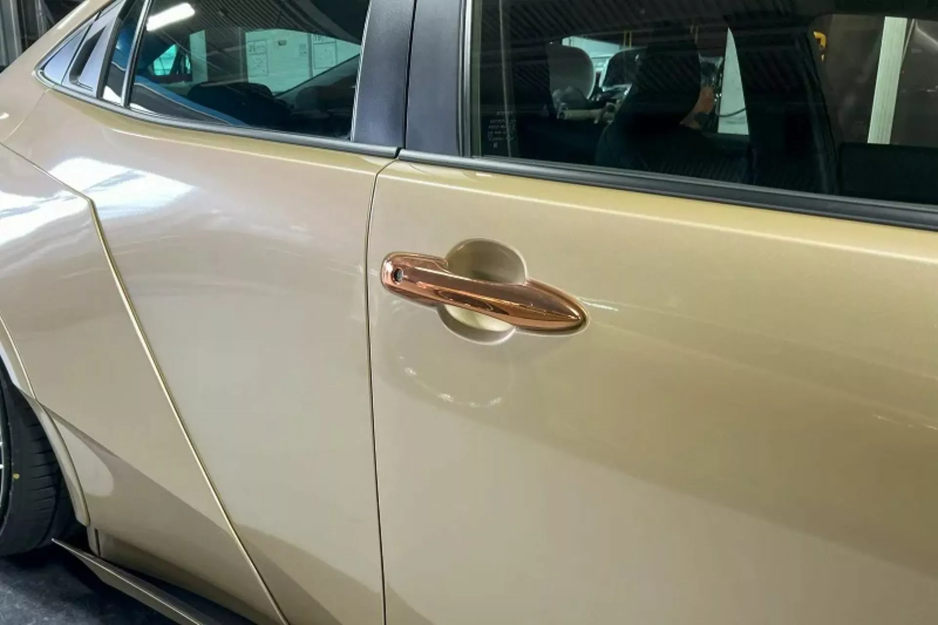نصف هذه السيارات مكسوّة بطلاء ذهبي ملفت للنظر، ونشير بشكل خاص لإصدارات تويوتا بريوس ونيسان جي تي ار في الصور المرفقة.