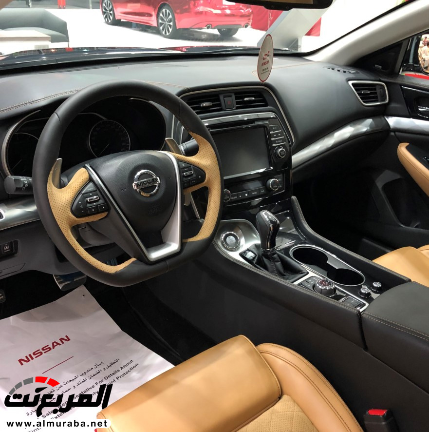 داخل المقصورة نجد أن نيسان قامت بتحديث كسوة ماكسيما 2019 الداخلية لكل من المقاعد ولوحة القيادة، لنجد زخرفات على المقاعد ذات نمط ماسي مع تطريز برتقالي اللون متعاكس مع الجلود المستخدمة في الداخلية، إضافة لمقود مزدوج اللون ولمسات برونزية مع عدادات رقمية جديدة وألواح أبواب من مواد مميزة جديدة تزيد من مدى الرفاهية والفخامة الداخلية.