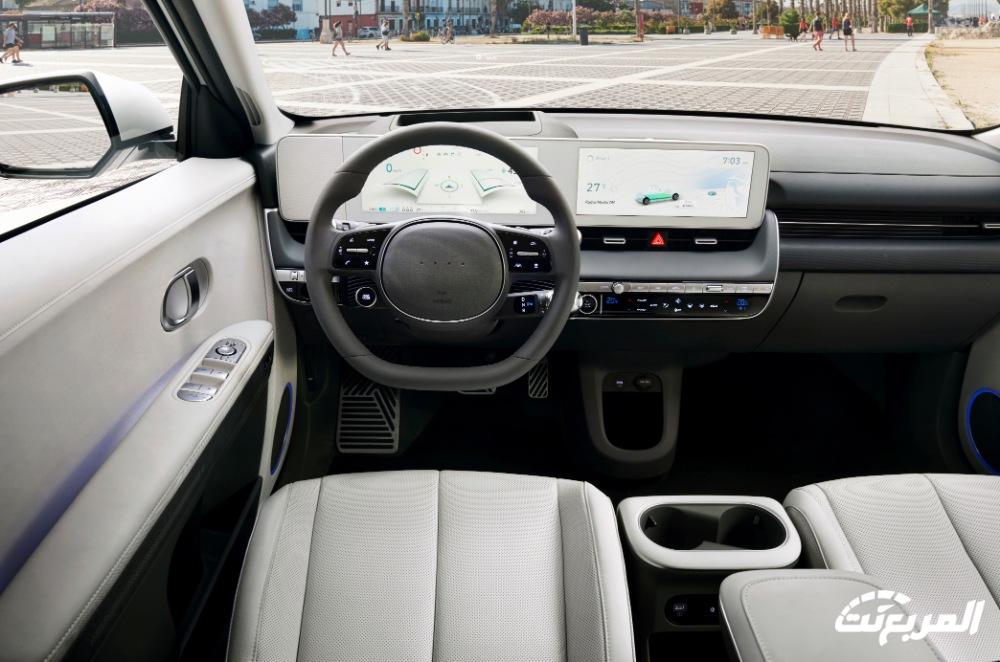 وبالانتقال من الخارج والداخل نلاحظ تصميم مقصورة هيونداي ايونيك 5 2024 والتي جمعت في مواصفاتها بين الأناقة والفخامة مع الطابع المتطور والعملي الذي يوحي بتقديم مستويات كبيرة من الراحة والرفاهية على الطريق.