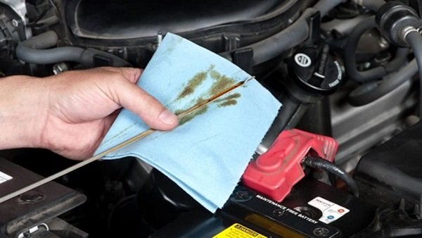 – ملاحظة تغيير لون الزيت من الدرجة البنية أو العسلية الفاتحة إلى اللون الأسود القاتم