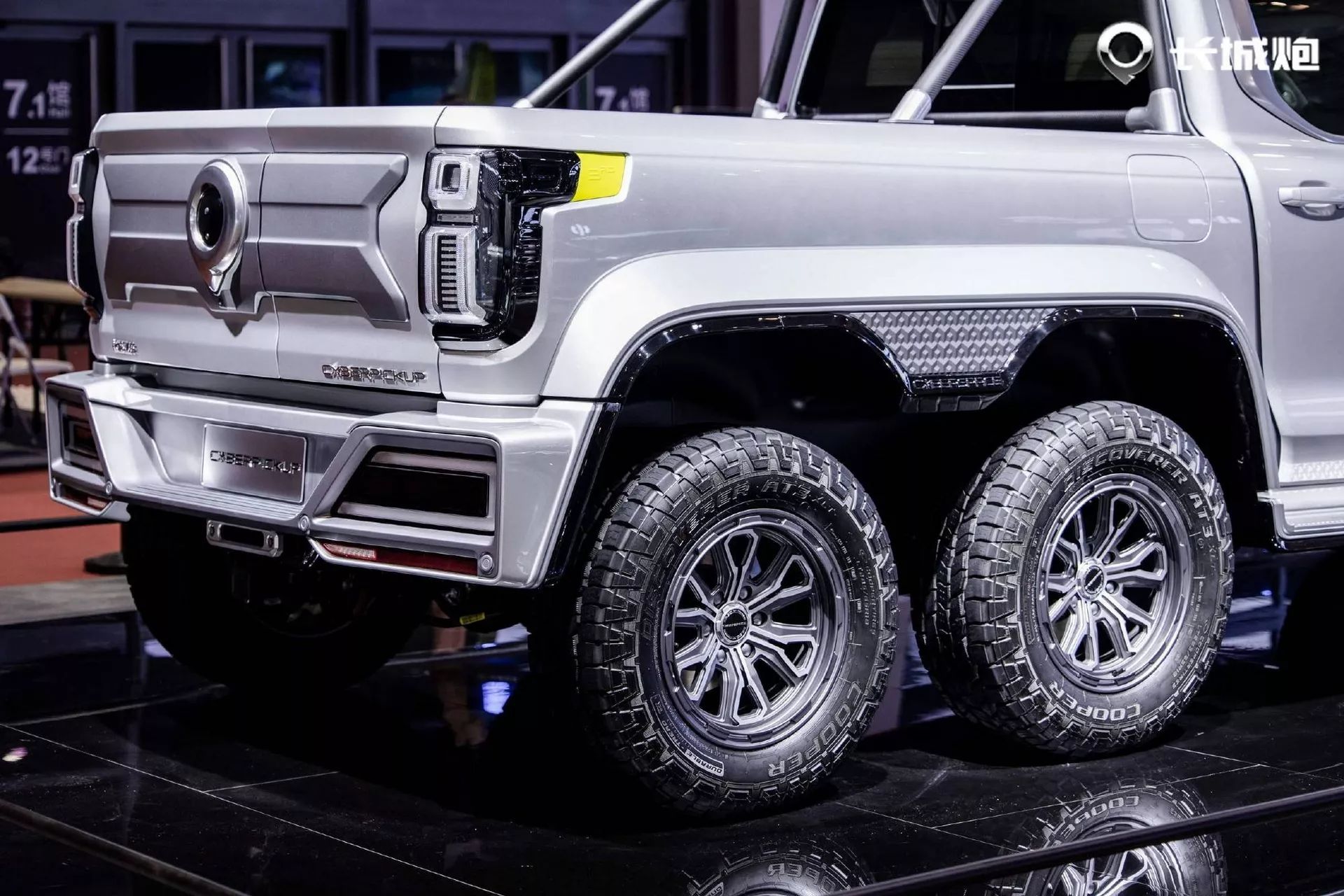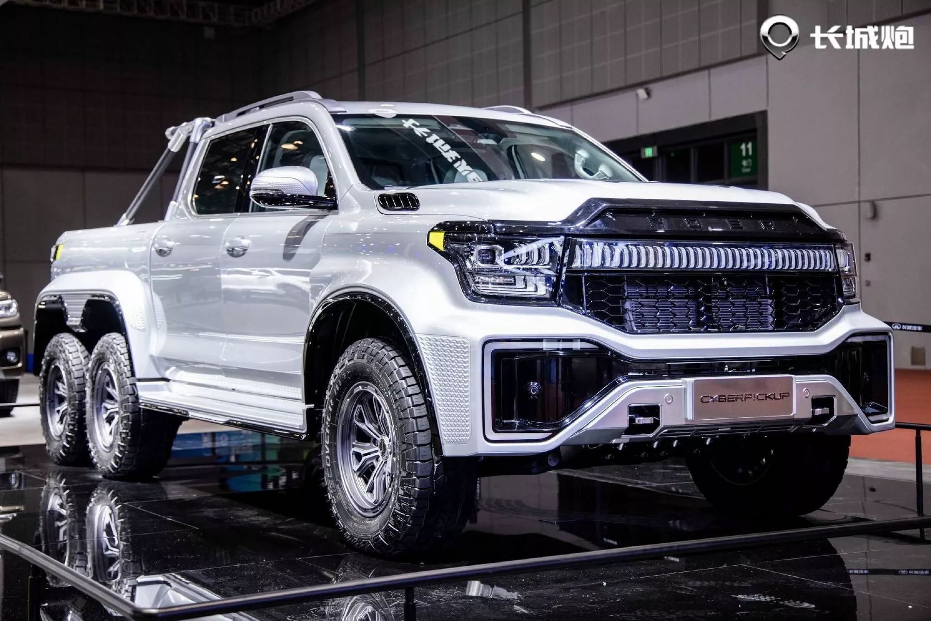 كشفت جريت وول الصينية عن شاحنة جديدة باسم سايبر بيك آب، مع نظام دفع سداسي وتصميم خارجي عضلي فريد، حيث تأتي بمصابيح خارجية LED ضخمة مع 6 عجلات رياضية بقياس 18 إنش بإطارات 33 إنش للطرق الوعرة، وتعتمد الشاحنة على محرك 3.0 لتر توين تربو هجين بالقابس، بقوة إجمالية 517 حصان مع 750 نيوتن متر من عزم الدوران، ويتم إرسال القوة إلى العجلات الستة.