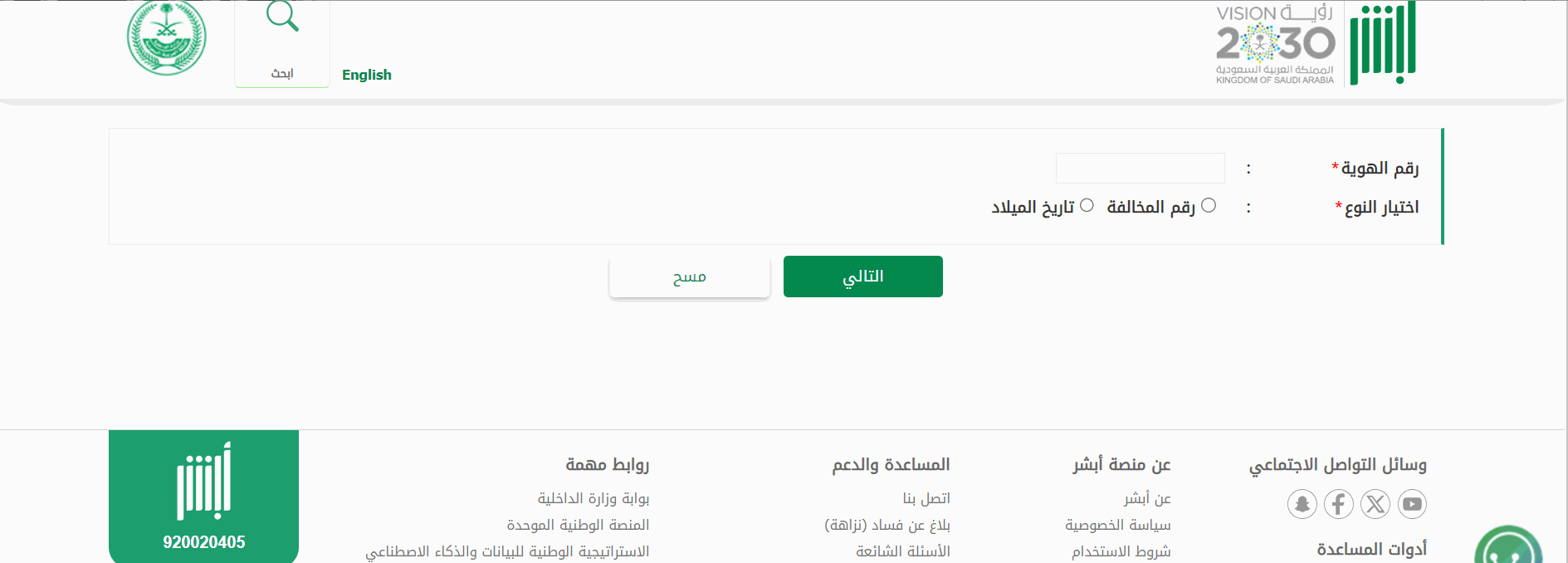 الاستعلام من أبشر المخالفات المرورية برقم الهوية