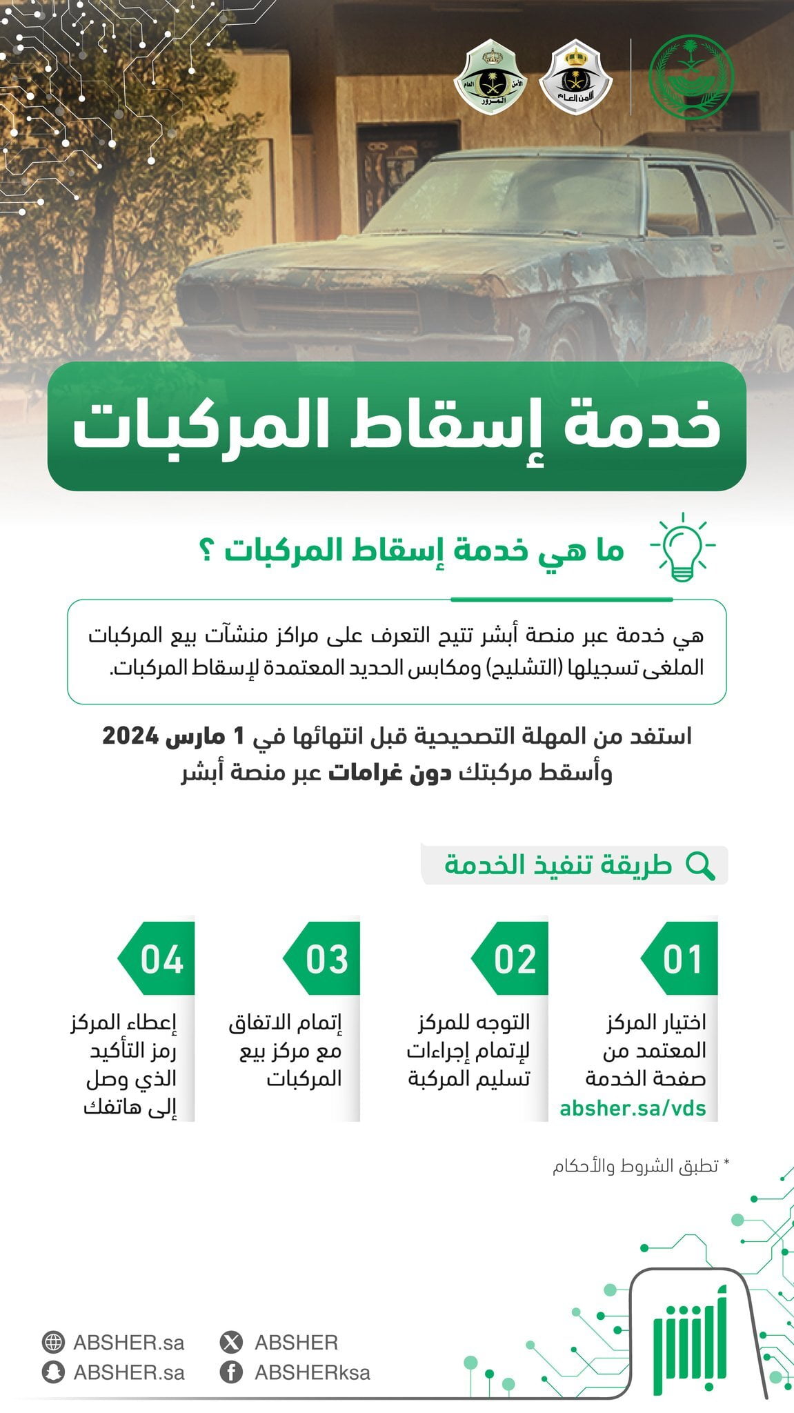 اقرأ أيضًا: شروط اسقاط المركبات إلكترونيا عبر منصة أبشر