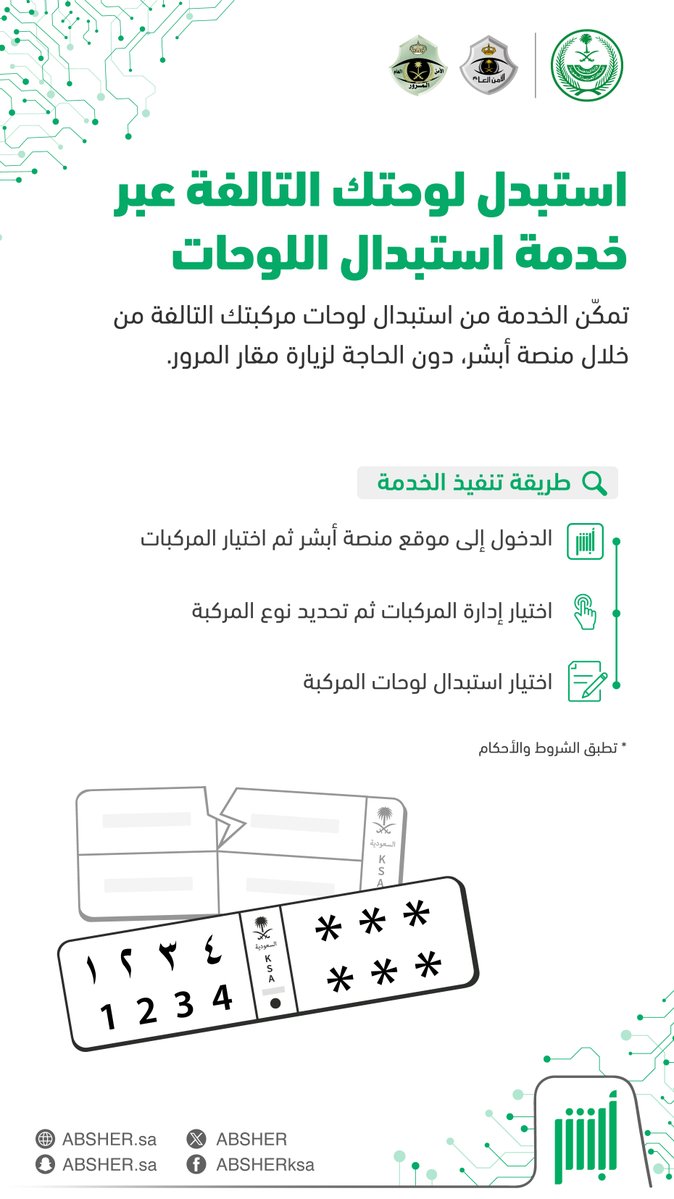 ما هي طريقة استبدال لوحات المركبات التالفة عبر منصة أبشر؟