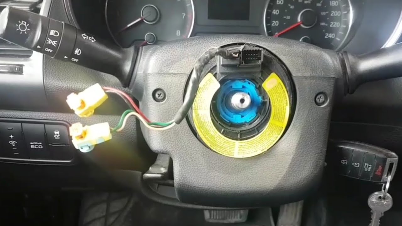 - فيشة الايرباق: هذه الفيشة تكون داخل مقود السيارة وتحتاج إلى فك الجزء الخارجي لرؤيتها والكشف عليها، ربما تكون مفصولة أو أطراف التوصيل الداخلية مكسورة أو بها مشكلة.