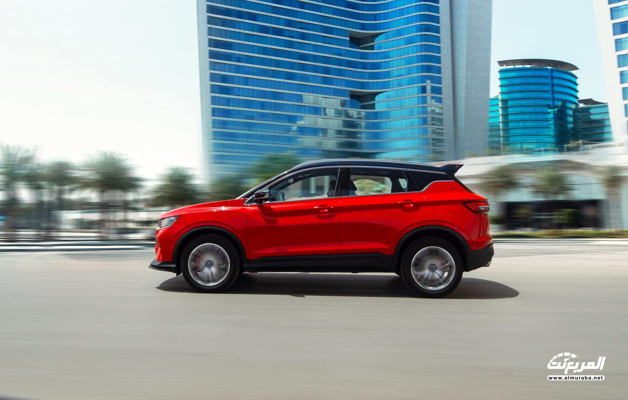 - تصميم السيارة: كروس أوفر بتصميم شبابي وتكنولوجيا متطورة، حيث يهيمن عليها مظهر رياضي جذاب عبر شبك أمامي كبير ومصابيح أمامية ونهارية LED، مع مصابيح خلفية LED متصلة عبر شريط معدني.