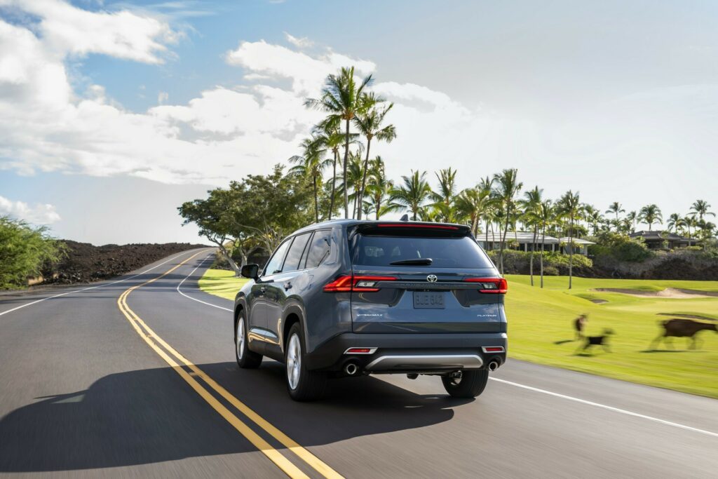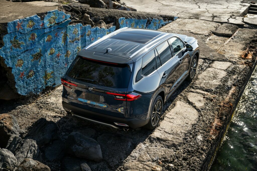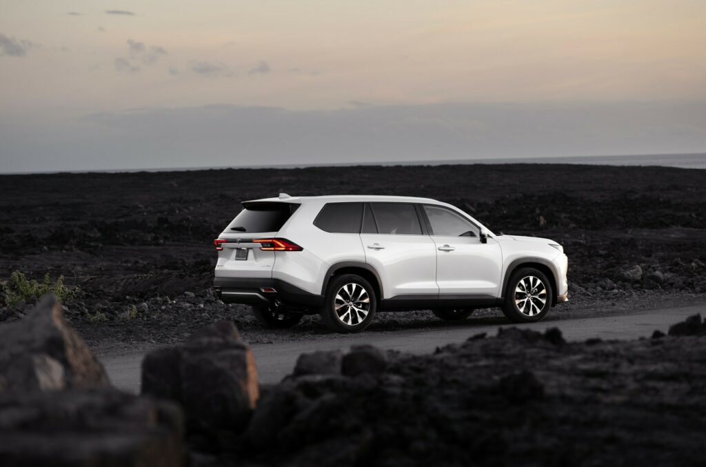 بالانتقال للتصميم الجانبي نرى أن تويوتا جراند هايلاندر حصلت على خطوط تصميمية انسيابية مع أقواس عجلات كبيرة، وتقدم بعجلات رياضية بقياس 18 إنش بالنسخة الأقل تجهيزاً وبعجلات رياضية بقياس 20 إنش لباقي النسخ، ويتميز المقطع الخلفي من السيارة بنسخة هايبرد ماكس بمنافذ عادم ثنائية.