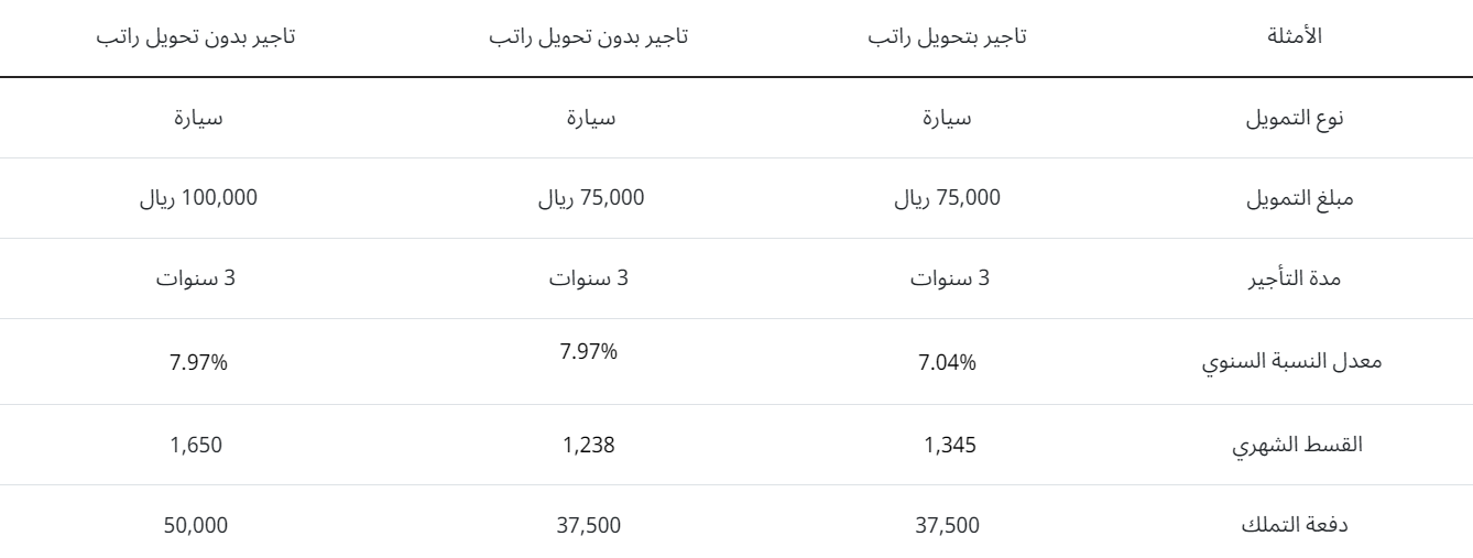 أمثلة توضيحية على تمويل سيارة بدون تحويل راتب/ بتحويل راتب