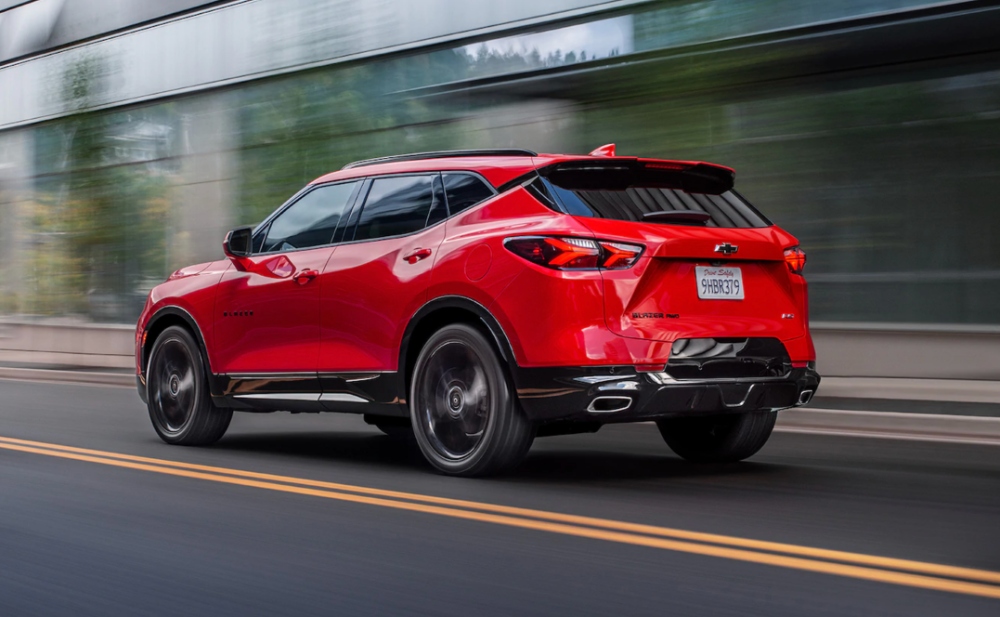 يقال أن بليزر هي كمارو المرتفعة، ويظهر ذلك في تصميم الخارجية بداية من تصميم الشبك الأمامي إلى تجسد خطوط الجسم العضلية والألوان الجريئة التي تتوفر بها السيارة، كما تتوفر بمحرك 6 سلندر من كامارو. كذلك الجنوط بالإطارات الرياضية العريضة تساهم في خلق الشخصية العدوانية للاس يو في.