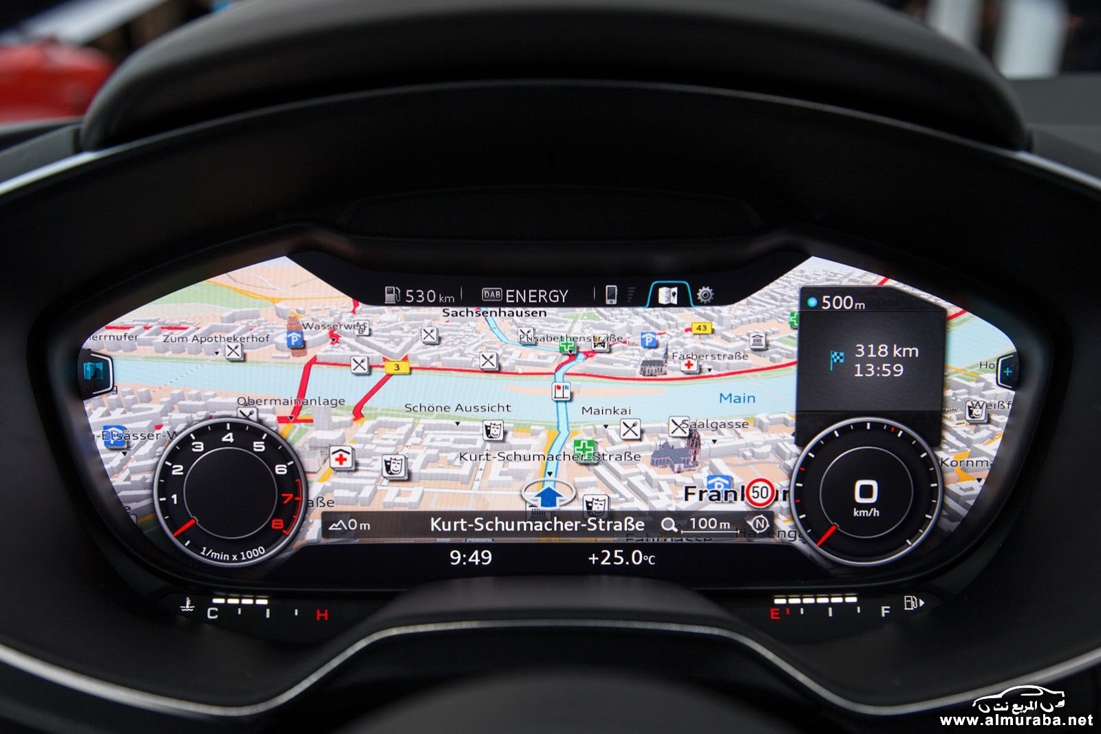 مما لا شك فيه،إن أول شيء تلتقطه عينيك على لوحة القيادة الجديدة فى اودي تي تي هي لوحة العدادات الرقمية بالكامل الضخمة بحجم 12.3 بوصة وشاشة TFT التي حلت محل المونتر المركزي القديم.