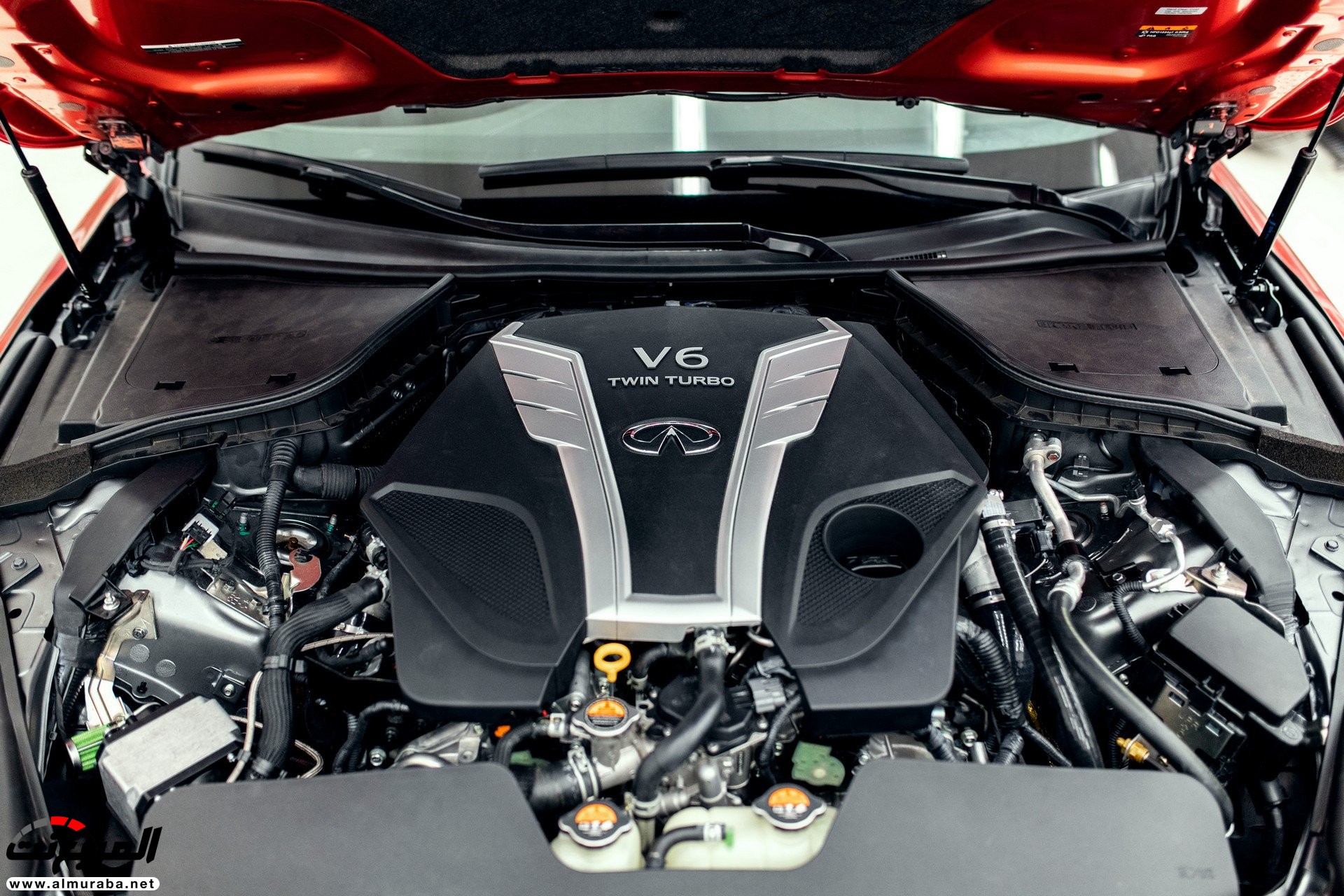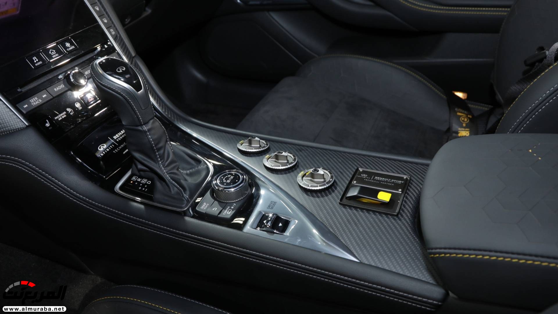 يستند النموذج على Q60 ريد سبورت 400 ويأتي بمحرك مزدوج التيربو V6 سعة 3 لتر بقوة 400 حصان و350 نيوتن.متر من عزم الدوران، حيث يتم دعم ذلك بنظام هجين ذو بطارية بقدرة 4.4 كيلو واط وثلاثة مولدات كهربائية تولد الطاقة أثناء التسارع والكبح.