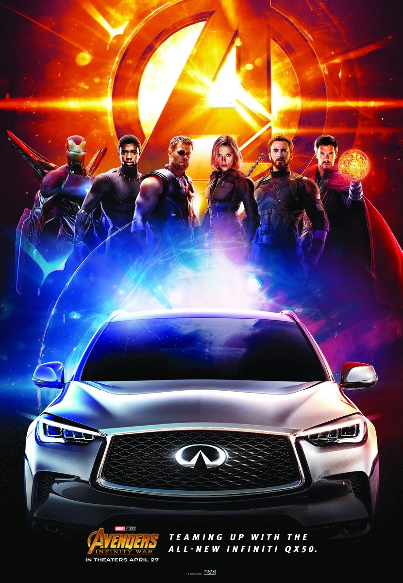 وعلقت نائبة رئيس قسم التسويق لمارفل، ميندي هاملتون، على الأمر بقولها: “نتطلع إلى حد كبير للعمل مع إنفينيتي لأول مرة”، مردفةً: “بين الطرح المرتقب لـ QX50 وفيلم Infinity War، رأينا فرصة هائلة لمشاركة تجاربنا التي تدور على المغامرة وأخذ المخاطرة والتميز لمتابعينا”.