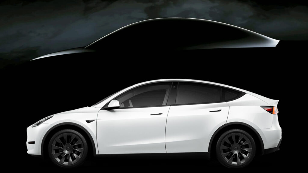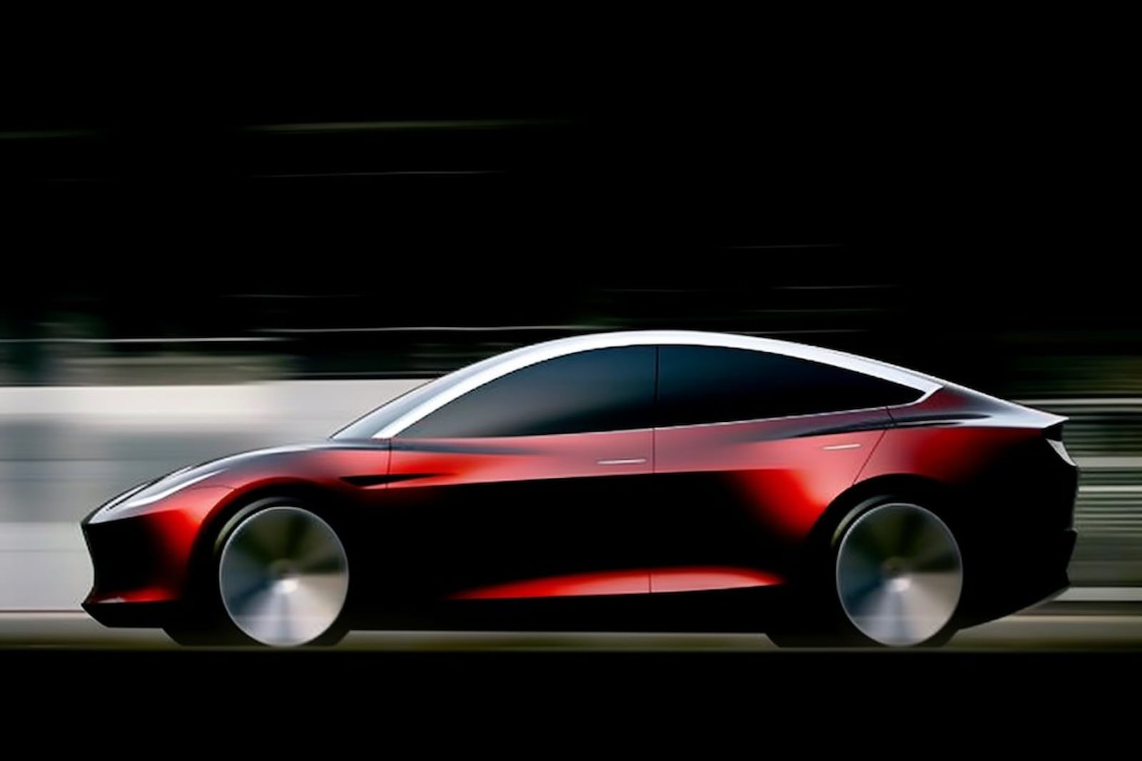 تم تحويل هذه الصورة الجانبية التشويقية إلى صورة تخيلية باستخدام الذكاء الاصطناعي لتوفر لنا أقرب مثال على السيارة الكهربائية الجديدة من تيسلا، وتشير التوقعات أن السيارة الكهربائية الأخرى سوف تعتمد على هيكل أصغر حجماً من باقي سيارات تيسلا الكهربائية لتصبح أرخص سيارة في مجموعة تيسلا والتي تستهدف القطاع الأكبر من العملاء حول العالم.