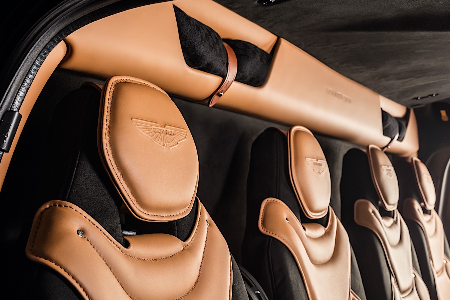 وتأتي الهليكوبتر بمقاعد جلدية بتخييط أنيق من إبداع استون مارتن ولمسات داخلية مستوحاة بشكل مباشر من بعض سيارات استون مارتن الأيقونية، مثل DB11، ونرى شعار العلامة الشهير في مختلف أنحاء الداخلية، مع لوح خاص يحمل شعار العلامة وشعار ايرباص واسم صاحب الهليكوبتر في لوحة القيادة.