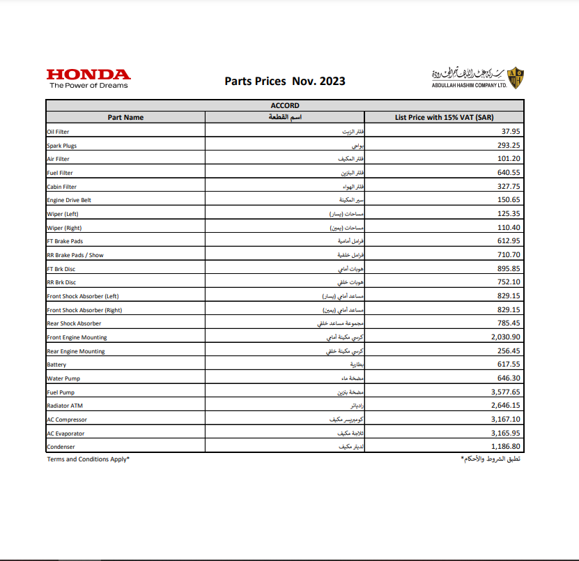 اسعار قطع غيار هوندا اصلي في السعودية