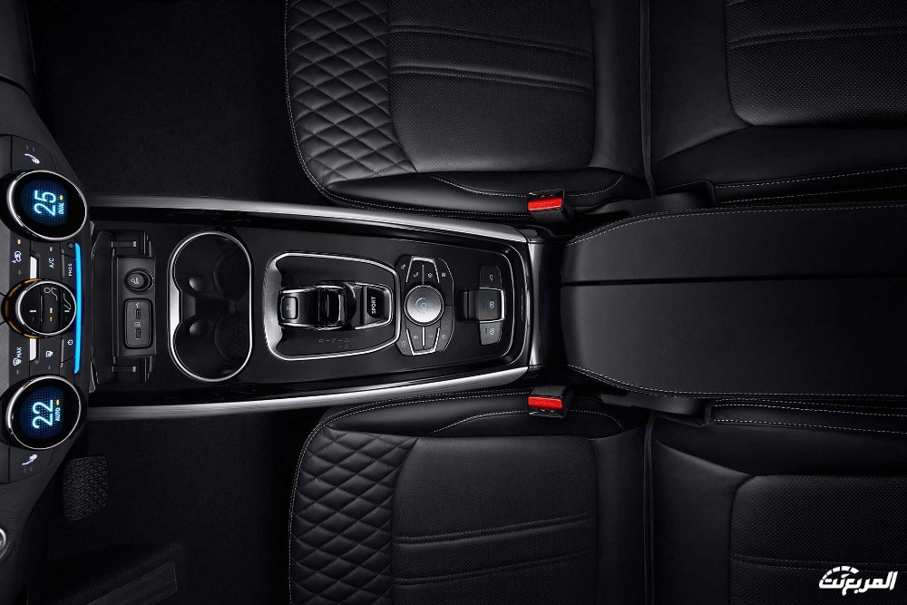 وتوجد فتحات التكييف أسفل الشاشة وبجانبها زر الانتظار، وأسفل فتحات التكييف توجد أزرار التحكم فيه حيث يعمل أوتوماتيكياً وثنائي المناطق، أما الكونسول الوسطي فيوجد ناقل الحركة الكهربائي بتصميمه المميز، مع وحدة تحكم في الشاشة اللمسية.