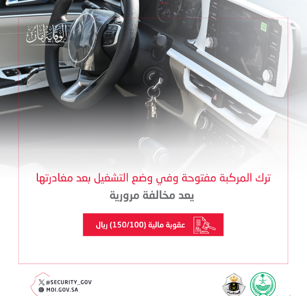 وحرصًا على عدم تعرض المركبات والممتلكات الشخصية للسرقة، جدد الحساب الرسمي للأمن العام السعودي تحذيره لقائدي المركبات من مغادرة مركباتهم وهي مفتوحة وفي وضع التشغيل، مؤكدًا أن هذا التصرف خاطئ ويعد مخالفة مرورية يعاقب مرتكبها من السائقين بالغرامة المالية.