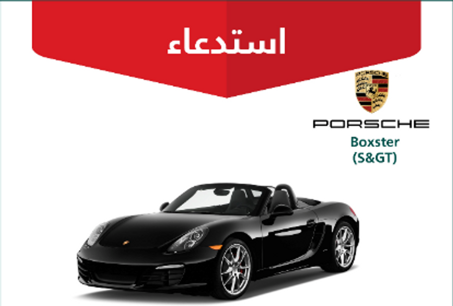 كما استدعت “التجارة” عدد 51 سيارة بورش “Cayman / Boxster”، موديلات 2013 – 2015، وذلك لخلل في حامل المحور الخلفي للمركبة، مما قد يؤدي إلى انكساره وفقد السيطرة على المركبة، الأمر الذي يزيد من احتمالية وقوع حادث.