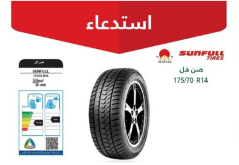 الجدير بالذكر، فإن وزارة التجارة كانت قد أصدرت في وقت سابق عدة استدعاءات لماركات متعددة من الإطارات، ومنها استدعاء 6,909 إطار “SUNFULL”، لسنة صنع 2022، وذلك لعدم مطابقة الإطارات المواصفات القياسية السعودية لكفاءة الطاقة.
