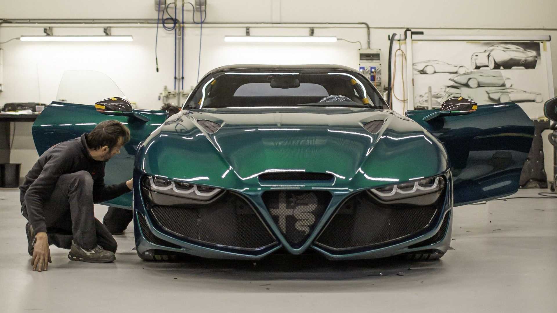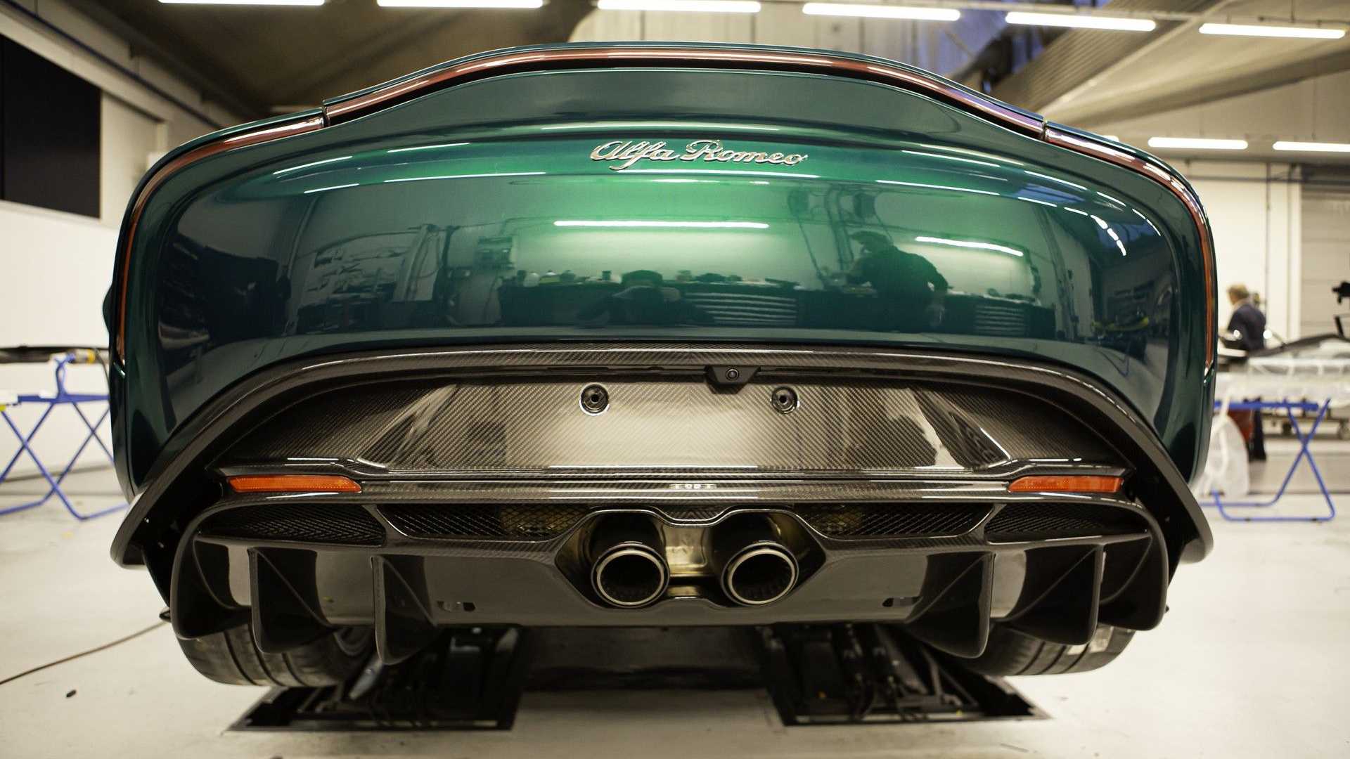 وتجمع السيارة بين لمحات التصميم الكلاسيكي والجديد، إذ تقتبس بعض جوانبها الجمالية من سيارة الفاروميو SZ المبنية في أواخر الثمانينات، مع استخدام نفس المصابيح الأمامية LED العصرية من جوليا 2023 فيس ليفت الجديدة.