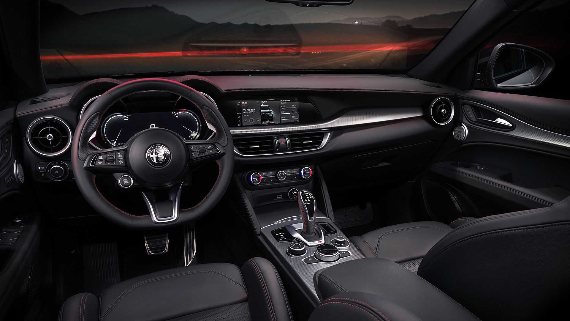 كما ستوفر الفاروميو إصدار Competizione الخاص الجديد المميز بطلائه الرمادي الداكن والمكابح الحمراء وجنوط 21 إنش الكبيرة، مع نظام سمعي فاخر من طراز هارمان كاردون، وشعارات حصرية على مساند الرأس، ولوحة عدادات ومقاعد جلدية بتخييط أحمر أنيق، وزجاج يحمي خصوصية الركاب.