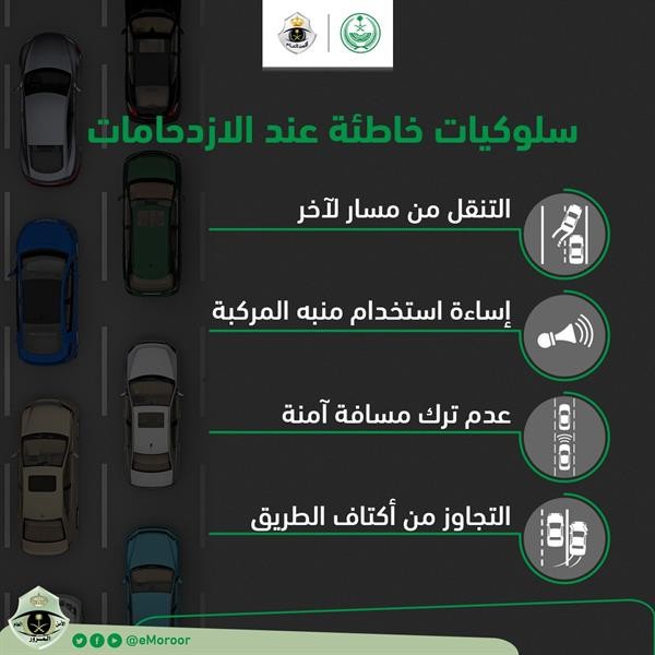 المربع نت – حذرت الإدارة العامة للمرور السعودي عبر حسابها الرسمي على تويتر قائدي السيارات من ارتكاب بعض السلوكيات الخاطئة في القيادة في حال الاختناقات المرورية، لكونها تعد مخالفة مرورية.