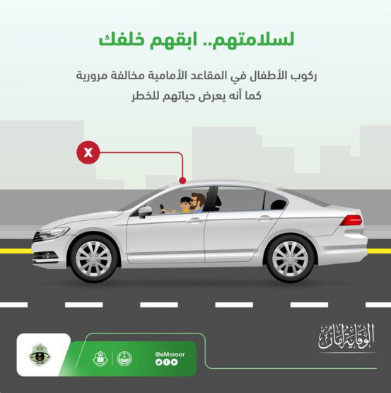 وفي سياق آخر، حذرت إدارة المرور في وقت سابق من جلوس الأطفال في المقعد الأمامي للسيارة معتبرةً أن ذلك يُعد من المخالفات المرورية التي تستوجب العقوبة، حيث إن جلوسهم في المقاعد الأمامية سوف يُعرّض حياتهم للخطر.