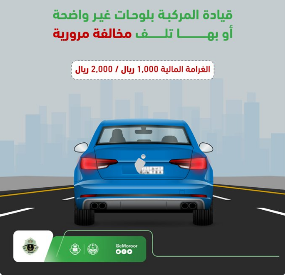 نشر “المرور” إنفوجراف توضيحي عبر حسابه، يؤكد أن قيادة المركبة بلوحات غير واضحة أو بها تلف يعد مخالفة مرورية، جاءت في جدول المخالفات رقم (5)، مبينًا أن الغرامة المالية المقررة لهذه المخالفة تتراوح ما بين ألف إلى ألفي ريال.