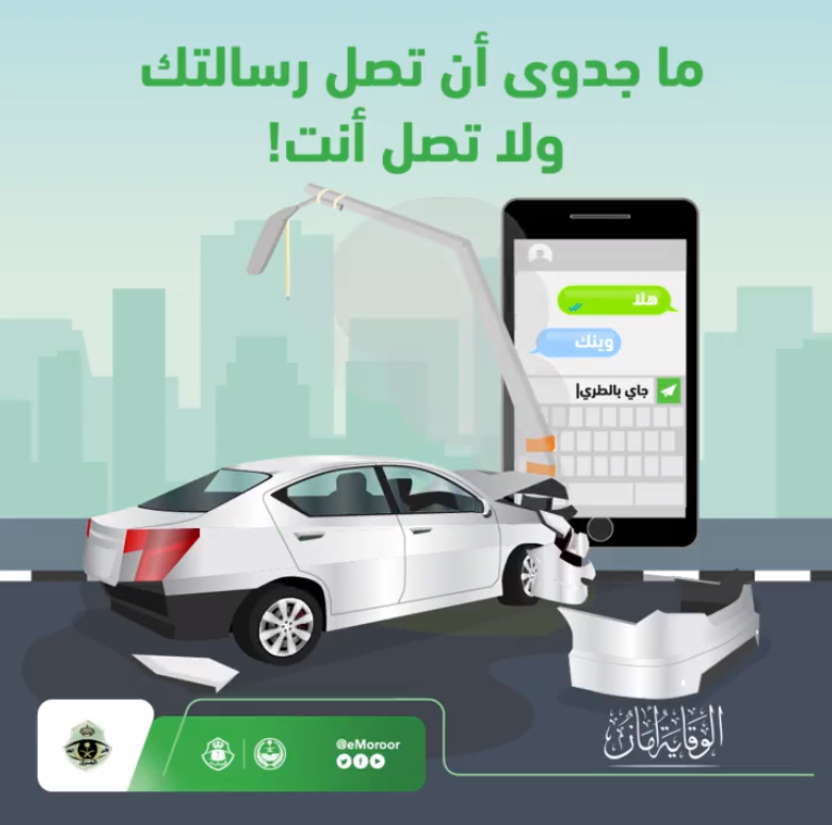 المربع نت – حذر الحساب الرسمي للإدارة العامة للمرور السعودي، قائدي المركبات من إجراء المكالمات أو تبادل الرسائل عبر الهاتف أثناء السير على الطرق، لخطورتها البالغة على سلامة القيادة، ولضمان وصولهم إلى وجهتهم بسلام.