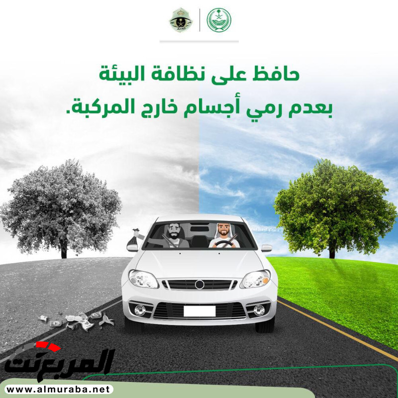 وكان نص التحذير كالتالي: “رمي أجسام خارج المركبة يعد مخالفة مرورية كما ورد بجدول المخالفات رقم (٣)”.