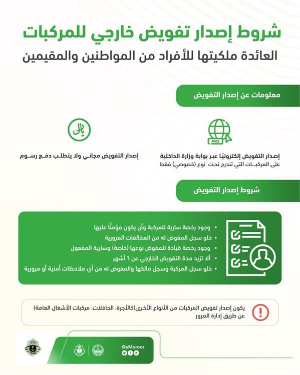 ما هي شروط إصدار تفويض خارجي للمركبات الخاصة؟