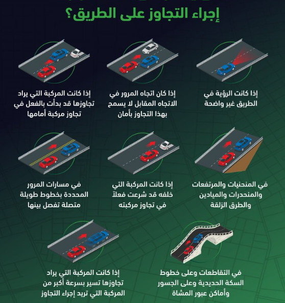للحفاظ على قائدي المركبات ومستخدمي الطريق، وضح الحساب الرسمي للمرور السعودي من خلال إنفوجراف توعوي 8 حالات يحظر فيها على السائقين إجراء أي تجاوز على الطريق، وفيما يلي نستعرضها لكم.