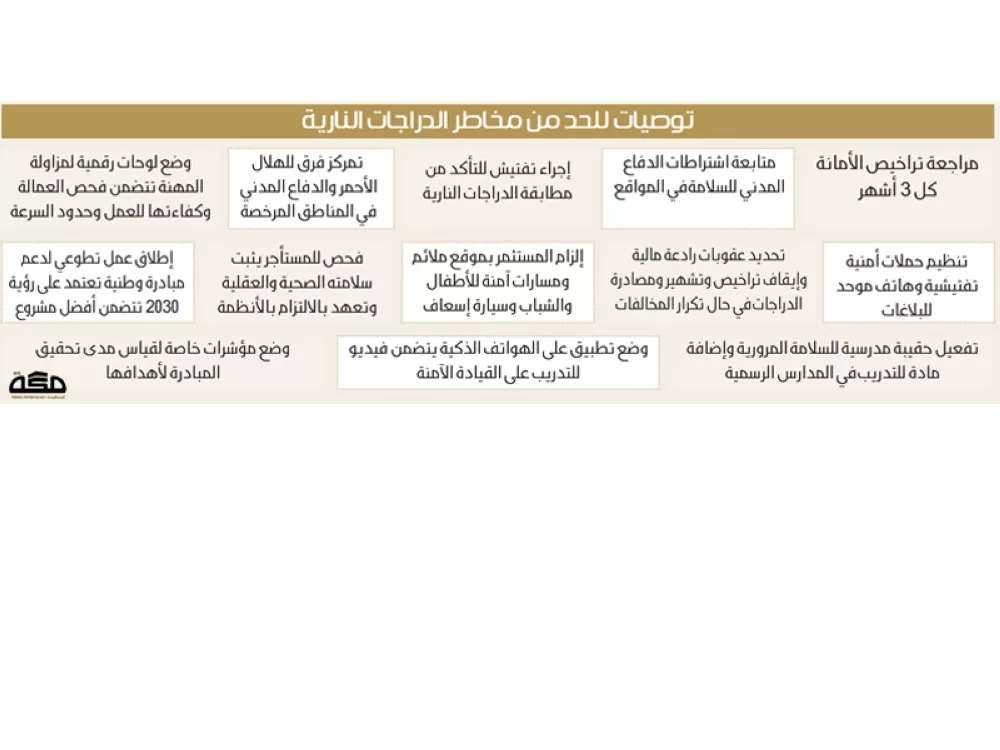 - تحديد عقوبات رادعة مالية وإيقاف تراخيص وتشهير ومصادرة الدراجات في حال تكرار المخالفات