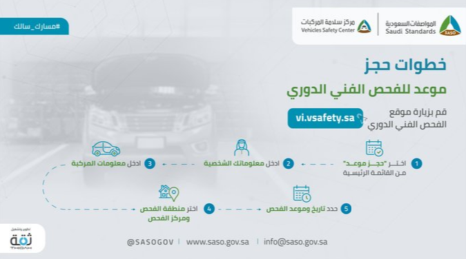 وأكدت المواصفات عبر حسابها الرسمي أن حجز موعد الفحص الفني الدوري أصبح إلزامي لجميع المركبات، مشيرة إلى أنه يمكنك الآن تفويض من ينوب عنك عن طريق منصة الفحص الفني الدوري لإجراء فحص مركبتك.