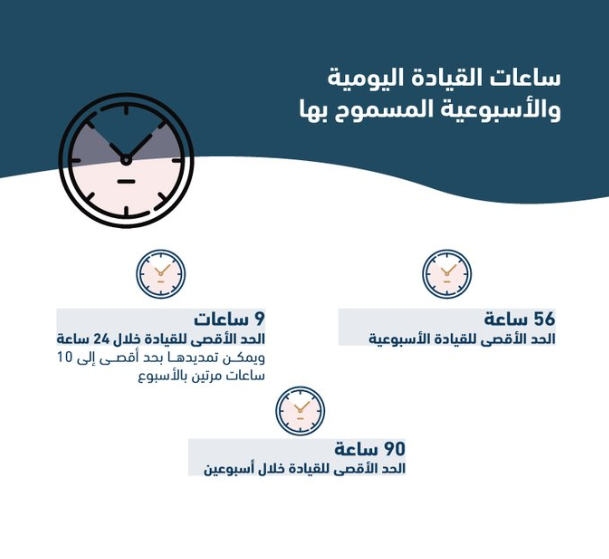 – 56 ساعة الحد الأقصى للقيادة الأسبوعية.