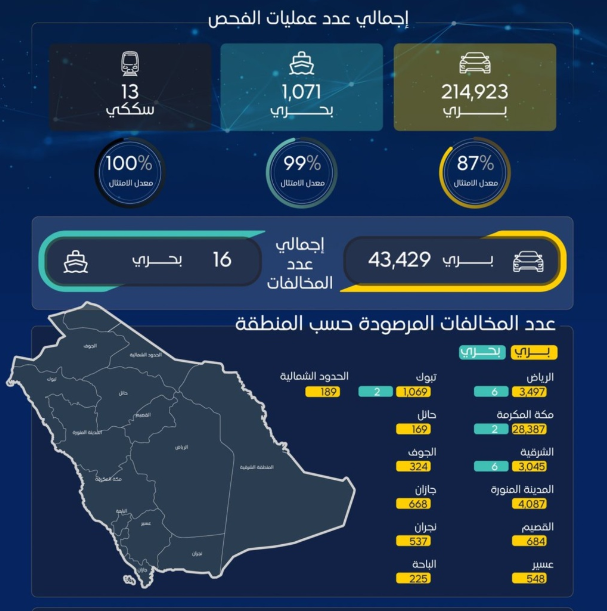 اقرأ أيضًا: “النقل” تنفذ 199 ألف عملية فحص..والرياض تتصدر المخالفات