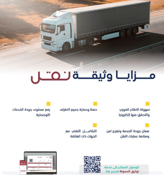 الجدير بالذكر، فإن الهيئة العامة للنقل كانت قد أعلنت عن إلزام كافة الشاحنات الأجنبية القاصدة للمملكة بإصدار وثيقة نقل الإلكترونية، وذلك اعتبارًا من يوم السبت الأول من أبريل 2023، بهدف رفع الفرص الاستثمارية وضمان عدالة المنافسة مع الناقل الوطني.