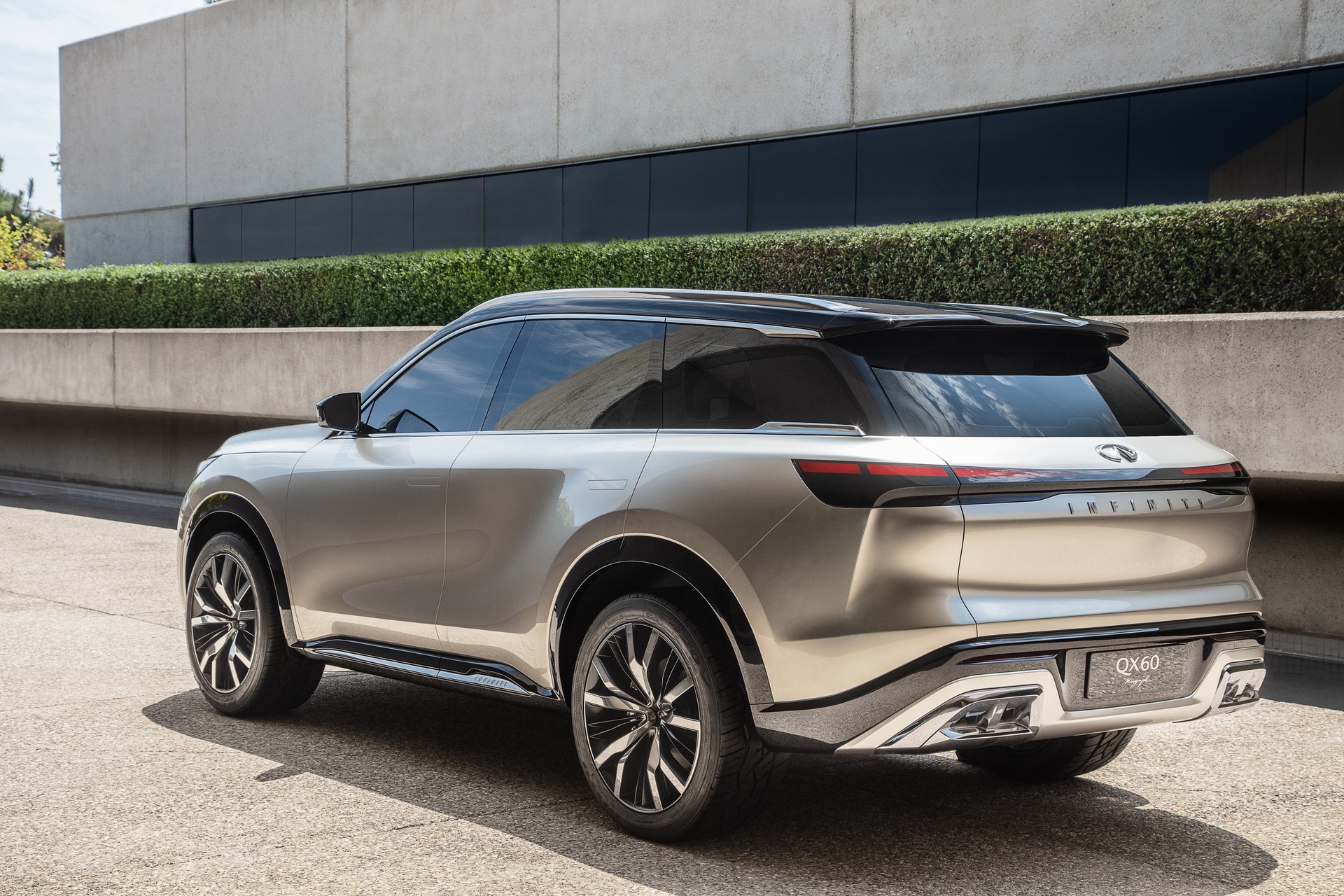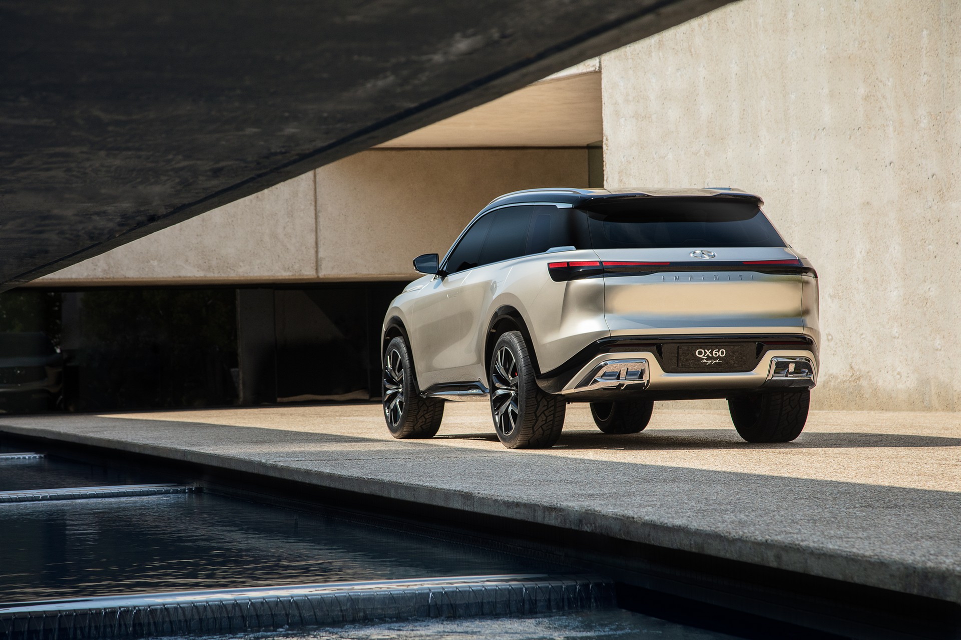 وقد أكدت انفينيتي أن QX60 ستستمر بكونها كروس أوفر بثلاثة صفوف مقاعد، ومن المحتمل استخدام الموديل الإنتاجي لمحرك 4 سلندر تيربو 2.0 لتر بقوة 272 حصان وعزم دوران 379 نيوتن متر.