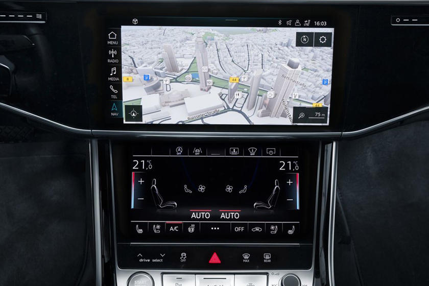 أصبحت A8 واحدة من أكثر متقدمة التقنيات في فئتها بفضل تصميم المقصورة الجديد ليتم التحكم في المناخ ونظام الترفيه المعلوماتي عبر شاشتين لمس، باﻹضافة لوجود شاشة توفر قمرة قيادة افتراضية، وهو ما يمكن أي شخص من تخصيص الداخلية كيفما يريد.