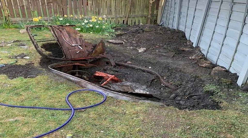 وبدأ برايشو الحفر في الحديقة ليكتشف المفاجأة المذهلة، حيث عثر على سيارة فورد بوبيولار نادرة مدفونة، تعود إلى خمسينيات القرن الماضي.
